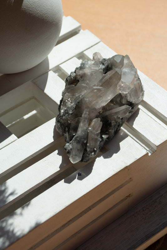 Blueberry Flourite on Candle Quartz from Inner Mongolia