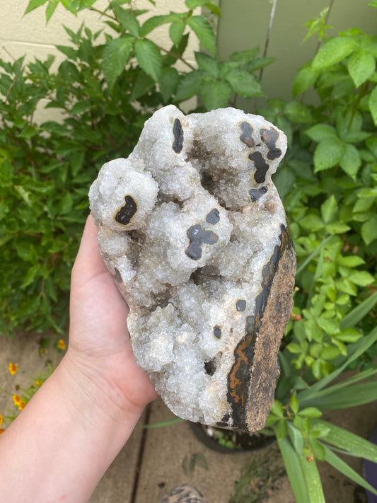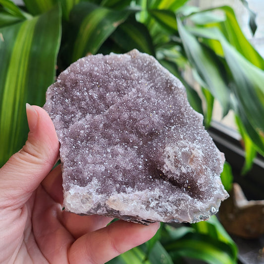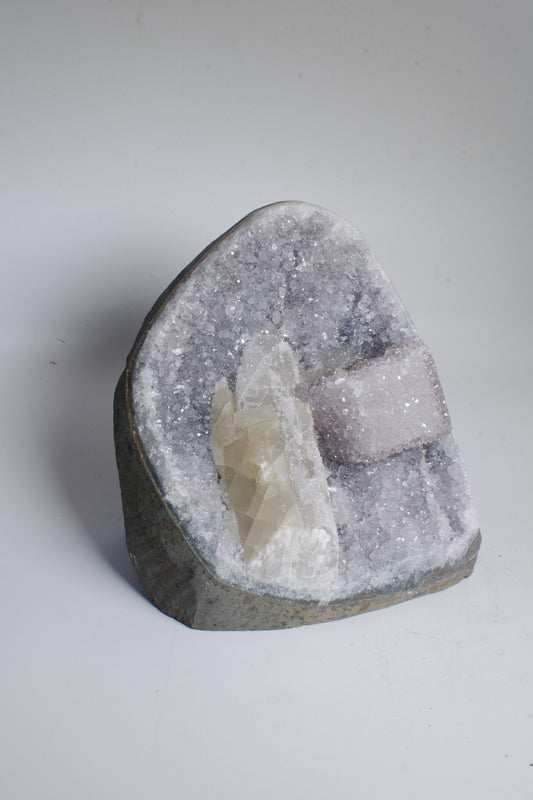 Galaxy Amethyst Cutbase with Druzy Calcite