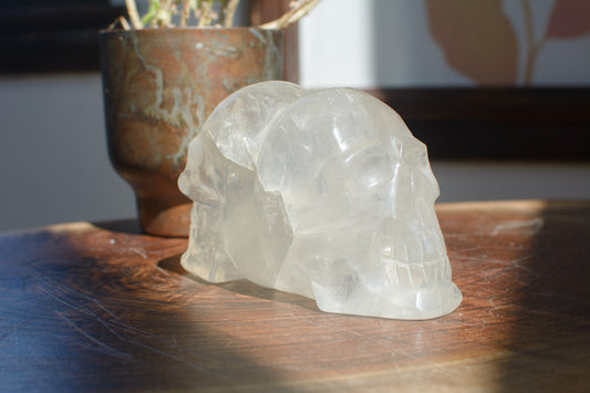 Large Hand polished Quartz Skull Shaped Specimen on Stand